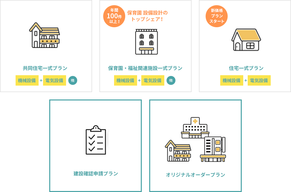 用途に応じて必要となる設備設計図一式を揃えたパッケージプランをご用意しました!