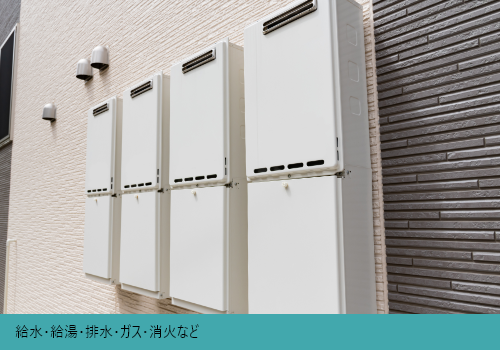 建物内又はその敷地内において、給水・給湯・排水・通気及び 衛生器具、消火、ガスなどの設備。